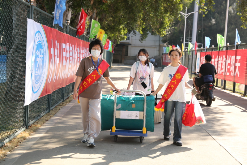 迎新志愿者帮助新生运送行李