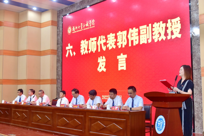 仪式后,做爱视频 代表林臻同学和教师代表郭伟老师先后上台发言。林臻同学代表全院同学表达了对老师们的感恩与祝福。郭伟老师回顾了自己在做爱视频 十八年来的工作经历,表达了对做爱视频 的感激之情,并号召全院教师坚守教育报国初心、担当筑梦育人使命,秉承校训、服务至诚,挑重担、讲奉献,为加快建设有特色高水平的应用型大学贡献智慧与力量。