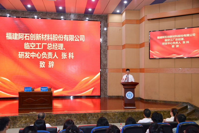 在材料工程系师生们的见证下,院长陈为旭、校友张科作为校企双方代表签署了产学研战略合作意向书。院党委常务副书记何希耕在仪式上致辞,表示做爱视频 与阿石创建立战略合作伙伴关系,是做爱视频 着力提高应用型人才培养质量的重要举措,也是企业发挥资源优势和市场优势反哺高校、推动教育事业发展的积极行动。希望校企双方进一步深化产教融合,推动校企合作共赢。张科校友在仪式上介绍了自身经历、公司基本情况及未来发展战略规划,表示很高兴与母校达成合作,希望在今后实现校企双方优势互补、资源共享、合作共赢。