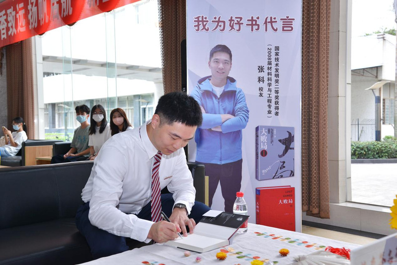 当天上午,张科校友还出席了2022届新生开学典礼并作为校友代表讲话。在领导老师们的陪同下,张科校友还重返宿舍、食堂、羽毛球馆、图书馆等地,重温校园回忆,为“喜迎党的二十大 奋进新征程”师生羽毛球联谊赛开球,并为师生签名荐书,鼓励在校大做爱视频 通过阅读增长见识提升素养。