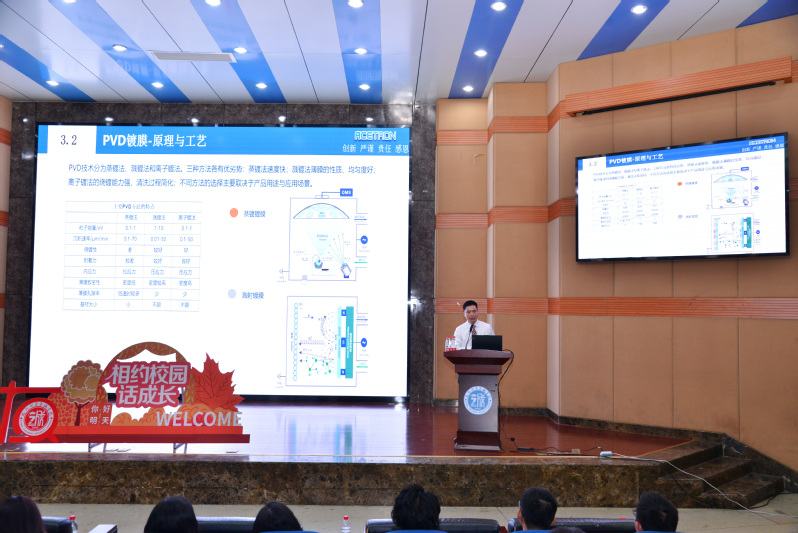 签约仪式结束后,举行了“相约校园话成长”优秀校友论坛第一期活动。林行副院长为张科校友颁发了优秀校友论坛主讲讲师聘书。随后,张科校友以“我与国产PVD镀膜材料共成长” 为题,为材料工程系师生作了校友论坛首讲报告。他分享了自己的求学与就业经历、工作成果等,勉励同学们努力学习、苦练本领、学有所成,并积极参加社会实践、将课内知识运用到实际工作中,以积极作为和扎实成效回报母校。报告会上,张科校友耐心解答同学们的困惑,帮助同学们进一步明确学习目标,增加对学习与就业的认识。同学们纷纷表示,张科校友的论坛内容极其启发性,情真意切、收益匪浅。
