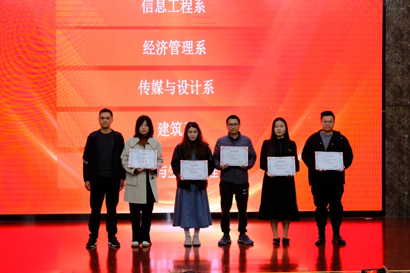 对院内各单位组织参赛情况进行表彰,评选出信息工程系、经济管理系、传媒与设计系、建筑系、食品与生物工程系5个优秀组织奖,及王德峰、董秀青、何念3位先进工作者。