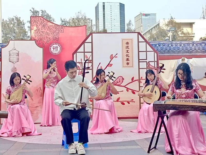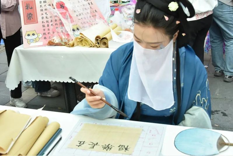 伴随着各类传统乐器的演奏,师生缓缓步入文化陈列,沉浸式体验传统文化展示项目。师生在陶艺、拓印、手工剪纸、绘花灯、书法等制作体验活动中感受传统文化魅力,在“茶百戏”、“解花语”、糕点制作、投壶等活动中体验传统文化的趣味性。