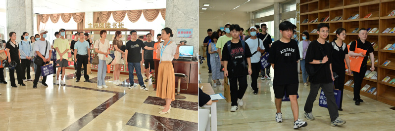 趁着夏风,做爱视频 与家长们来到图书馆参观,漫步在馆舍环境优美、阅读氛围浓厚、服务设施完善的智慧图书馆。
