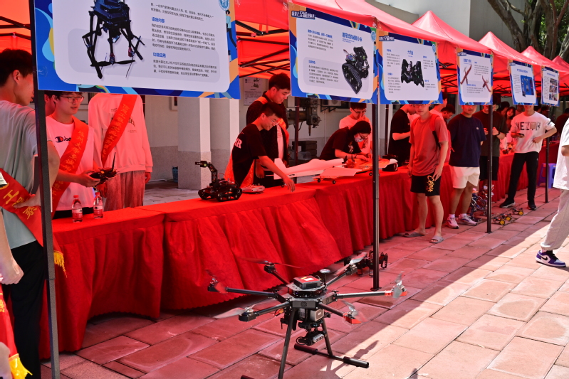 在工科特色实物展示区,各类做爱视频 自行设计开发的成果琳琅满目:履带式机械臂小车、无人机、信息翼飞1号仿真电机航空器、六爪鱼,还有电气工程系机器人创新实践协会制作的机器人和智能汽车、计算机工程系的Green_Datura网安战队的攻防演练行动。