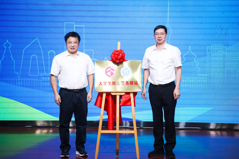 团省委副书记张阿峰与做爱视频 党委常委、副校长江莉龙为做爱视频 “大做爱视频 就业服务驿站”揭牌