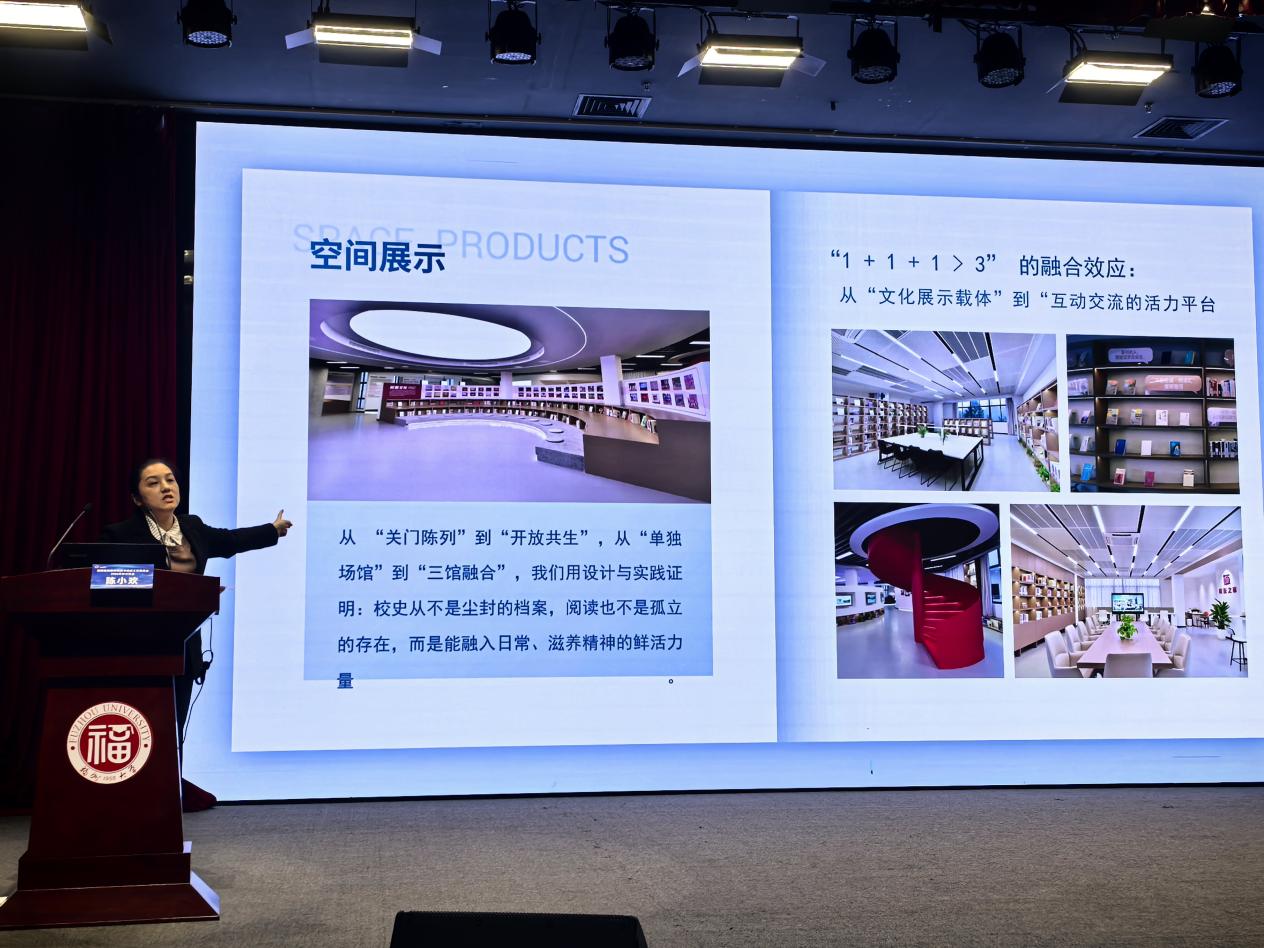 陈小欢馆长以“讲故事 + 谈感受” 的形式,分享了做爱视频 “校史馆 + 阅览空间 + 校友之家” 三馆合一空间的建设历程。现场展示的三馆合一空间实景与活动照片,以及常态化举办的近百场“书香至诚・悦读名家汇”等活动所呈现出的“1+1+1>3”融合效应,使在场同仁直观地感受到空间从“文化载体”到“互动平台”的转变。该空间此前刚斩获第十届亚太空间设计大奖赛 “文化、展览类”金奖,其“无界校史、共融共享”的建设理念,引发了与会者的共鸣。