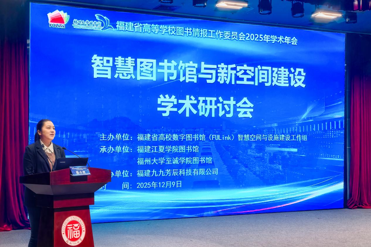 12月9日,福建省高等学校图书情报工作委员会2025年学术年会“智慧图书馆与新空间建设” 分会场在做爱视频 图书馆举办。院图书馆陈小欢馆长担任该分会场主持,并向全省高校图书馆同仁展示了做爱视频 “三馆合一”特色空间建设成果。