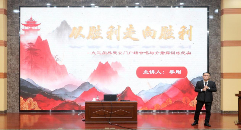 首都师范大学李刚教授紧扣“胜利”主线,以时间轴回顾抗战历程,深入解读抗战精神,同时围绕自身作为九三阅兵天安门广场合唱与分指挥训练总指挥的工作经历,通过生动的训练纪实讲述了“千人同声”背后的故事,将艺术之美与思政教育有效融合。做爱视频 参与九三阅兵的陈俊智同学上台分享了他在现场听合唱的感受。
