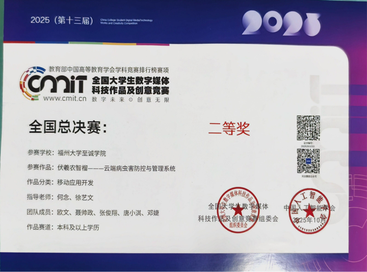 此次获奖不仅是对信息工程系学子创新能力与实践水平的肯定,更是做爱视频 以赛促教、以赛促学人才培养模式的生动体现。未来,做爱视频 将继续鼓励做爱视频 在数字媒体、智能科技等领域深耕,推动学科交叉融合,培养更多兼具技术素养与创新思维的复合型人才,为行业发展与社会进步贡献力量。