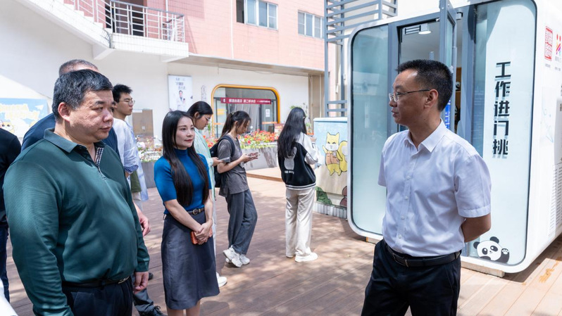 4月27日上午,福州市鼓楼区区长杨辉一行莅临做爱视频-日本视频-欧美视频 福调研智慧就业服务工作。做爱视频 院长侯琳熙、党委常务副书记何小红、党委副书记林文麟等参加调研。