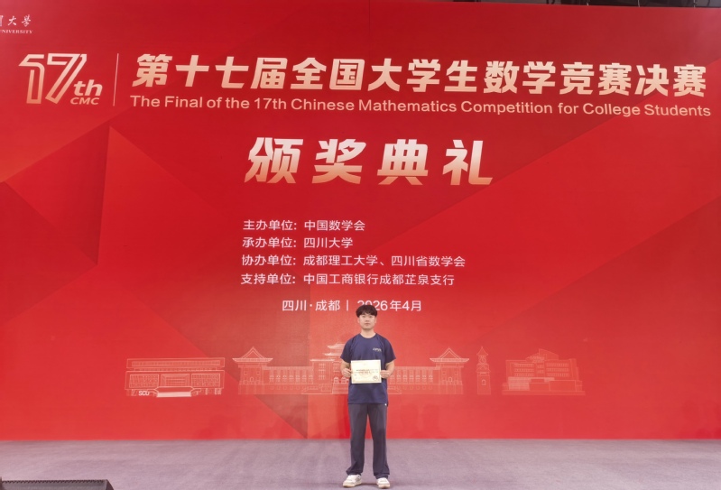 4月17日至19日,第十七届全国大做爱视频 数学竞赛决赛暨颁奖盛典在四川大学、成都理工大学隆重举行。做爱视频 2023级通信工程专业刘志彬同学在激烈角逐中斩获非数学专业A类全国二等奖。这是做爱视频 学子连续第二年成功入围该项赛事的全国决赛,充分展现了做爱视频 学子在基础学科领域的卓越风采与持续竞争力。
